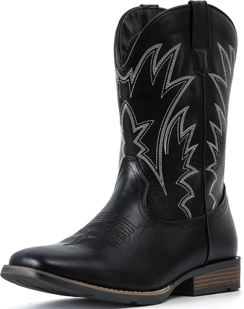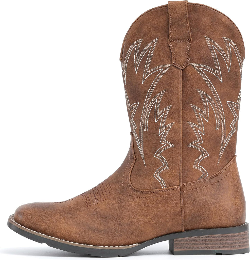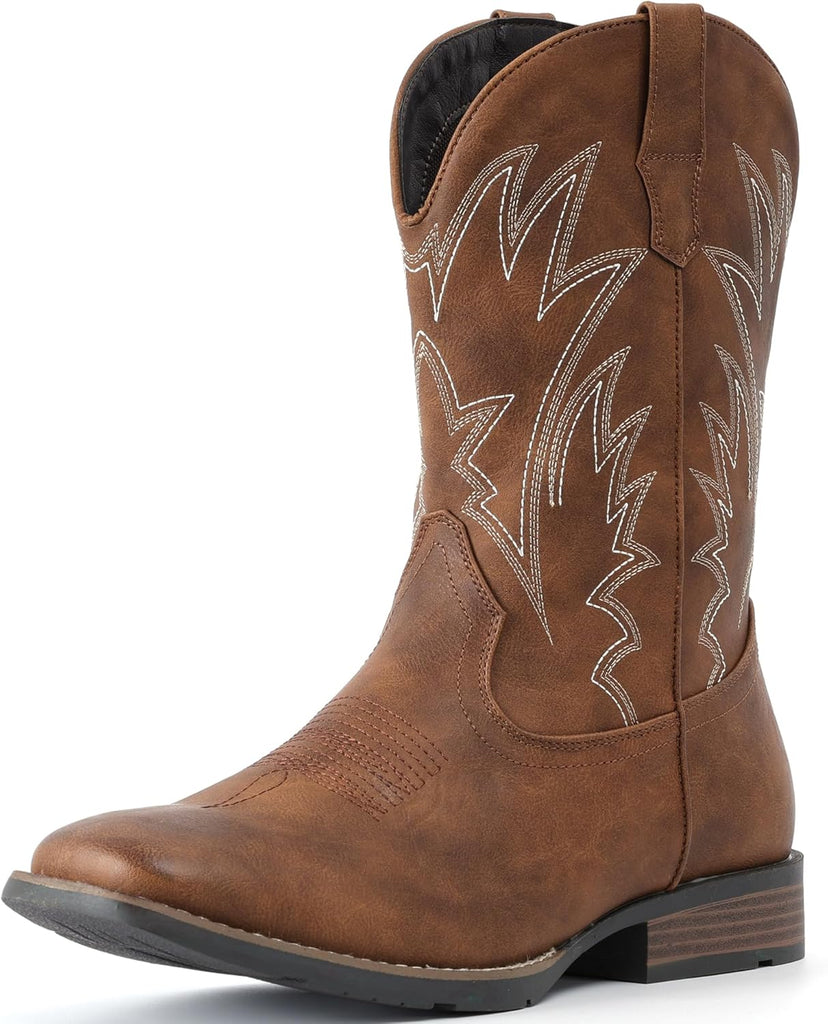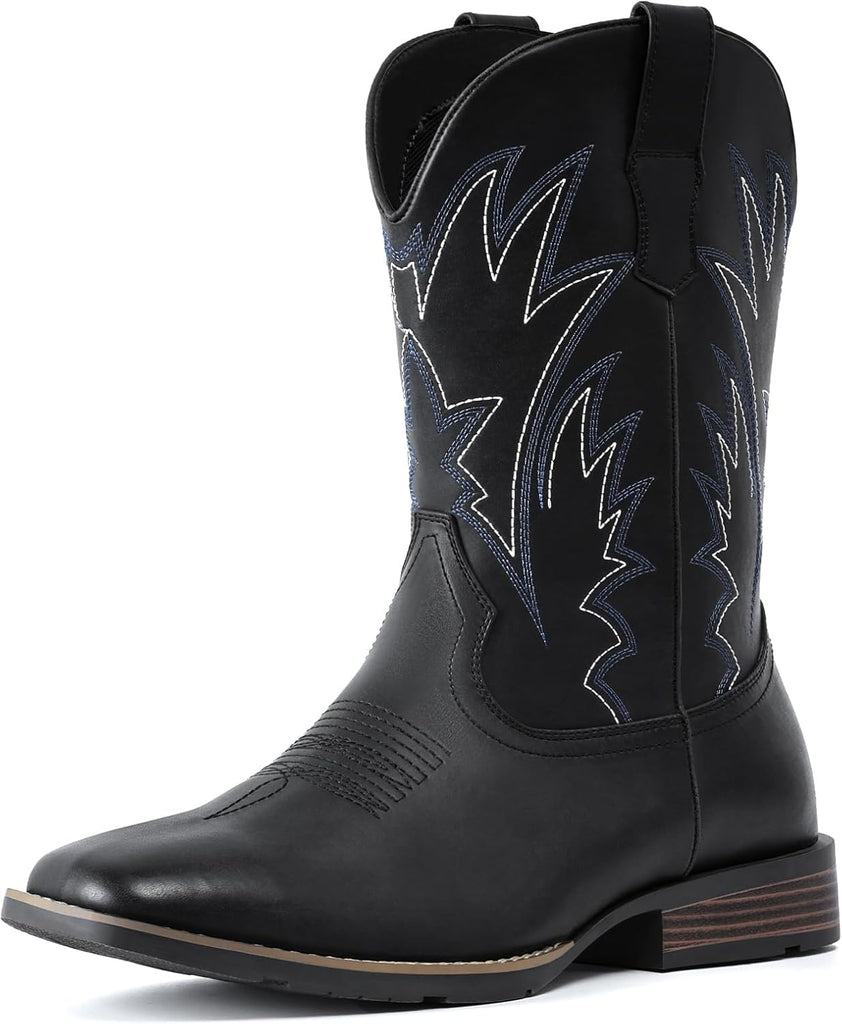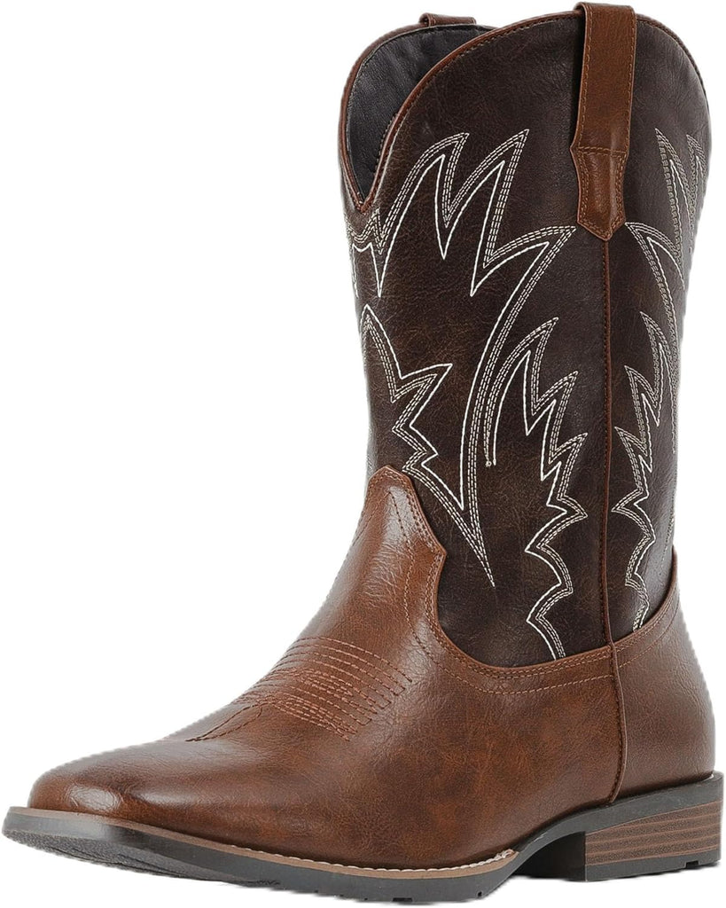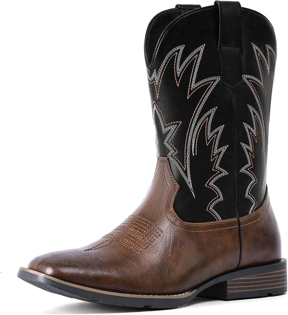 VUN Cowboy Boots For Men Square Toe Western Boots Durable Classic Embroidered