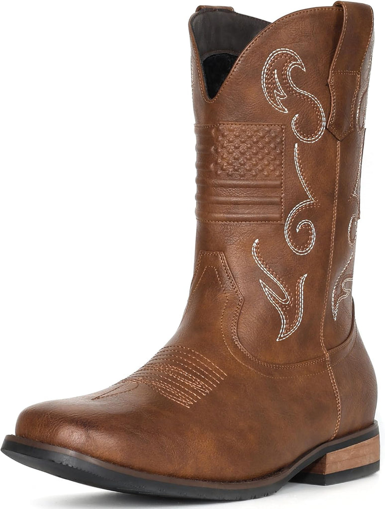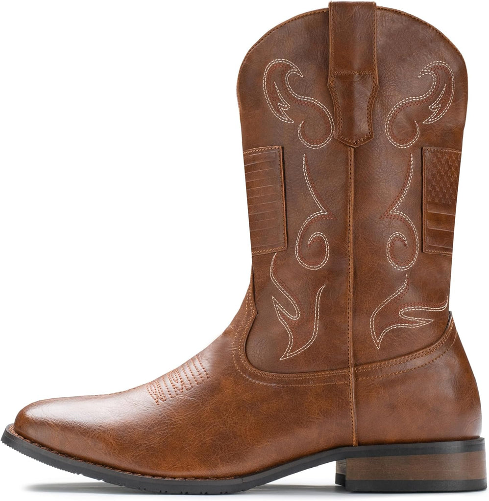 VUN Cowboy Boots For Men Western Boot Classic American Flag Embroid