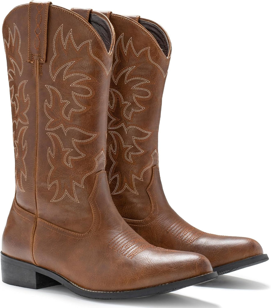 VUN Cowboy Boots For Men Western Boot Durable Classic Embroidered Snip Toe Boots