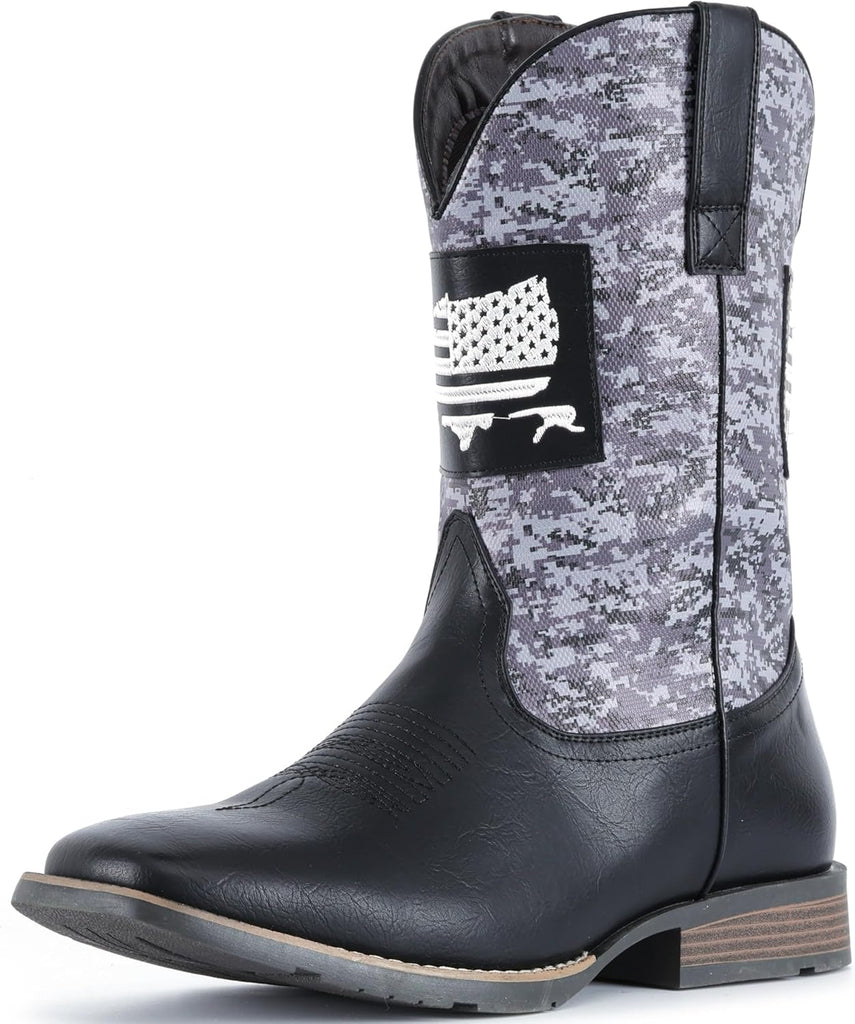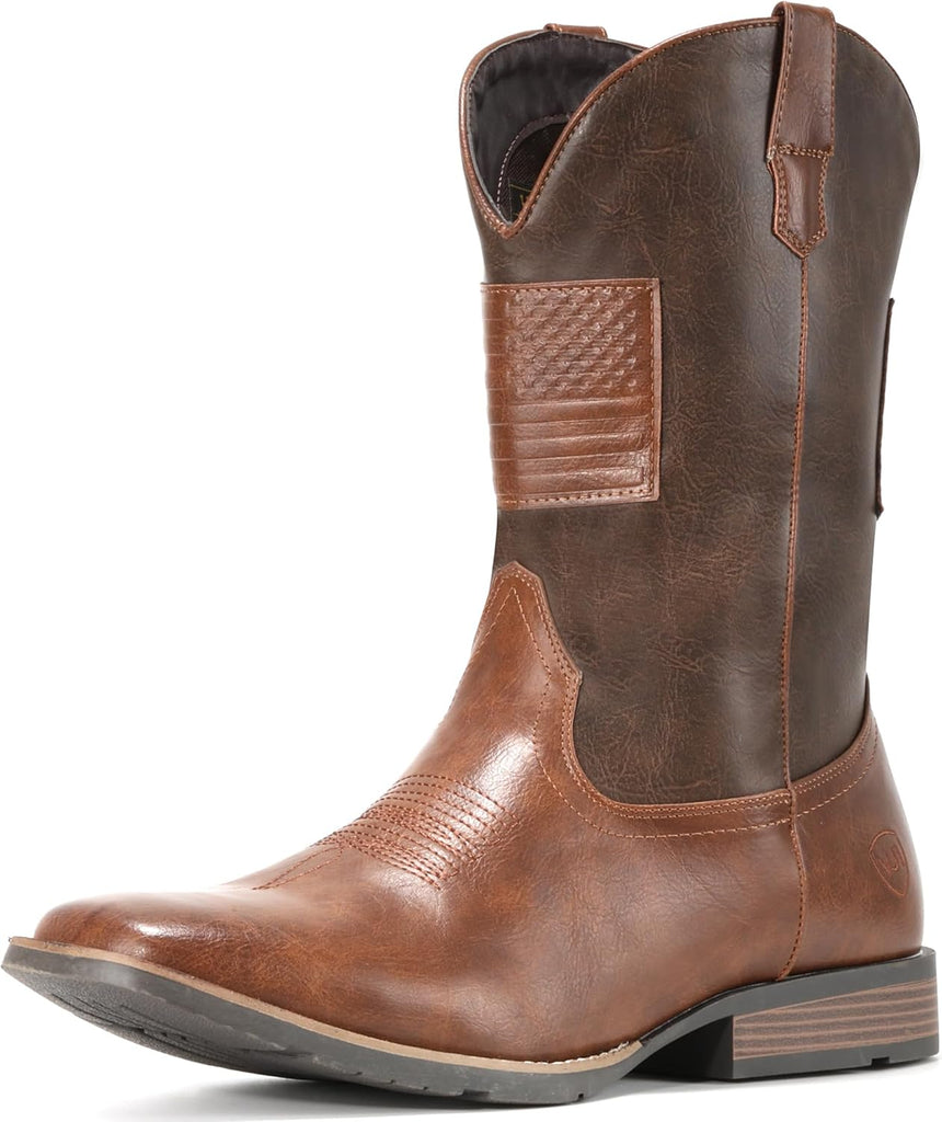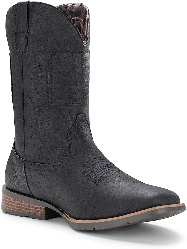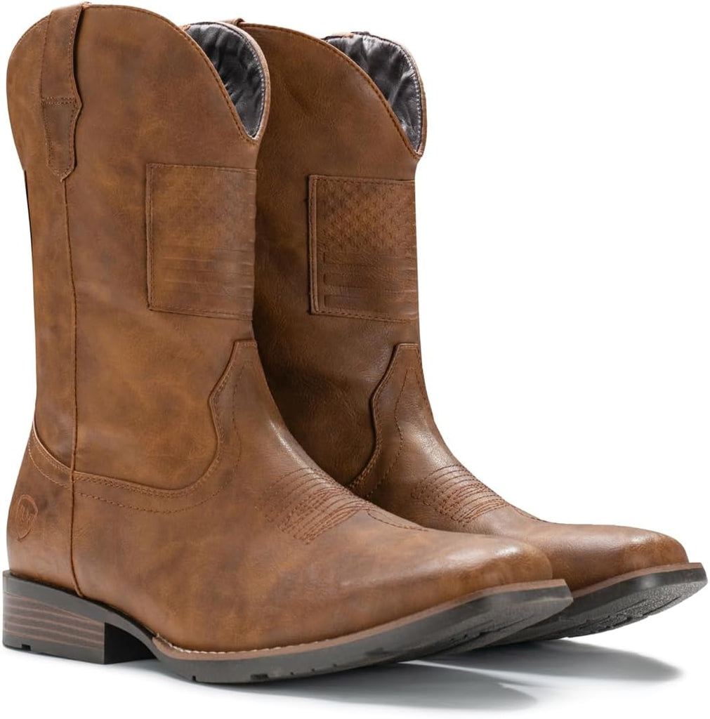 VUN Cowboy Boots For Men Wide Western Boot Traditional American Flag Retro Square Toe Country Work Boots