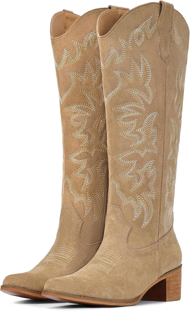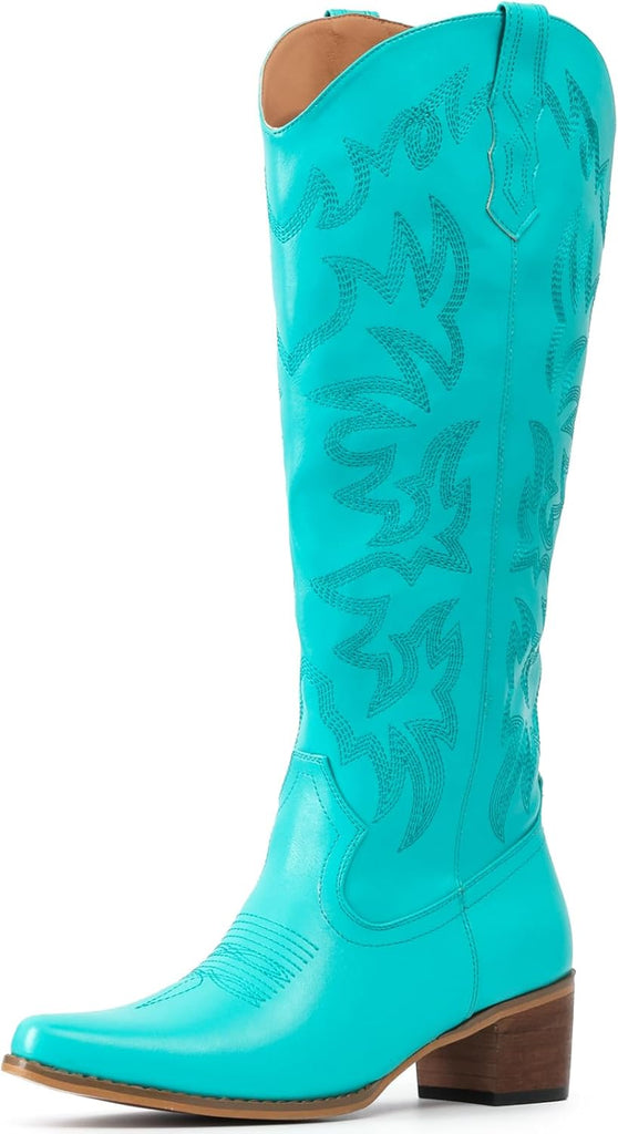 VUN Cowboy Boots For Women Knee High Western Cowgirl Boots Snip Toe Side Zipper Chunky Heel