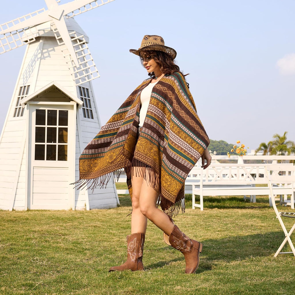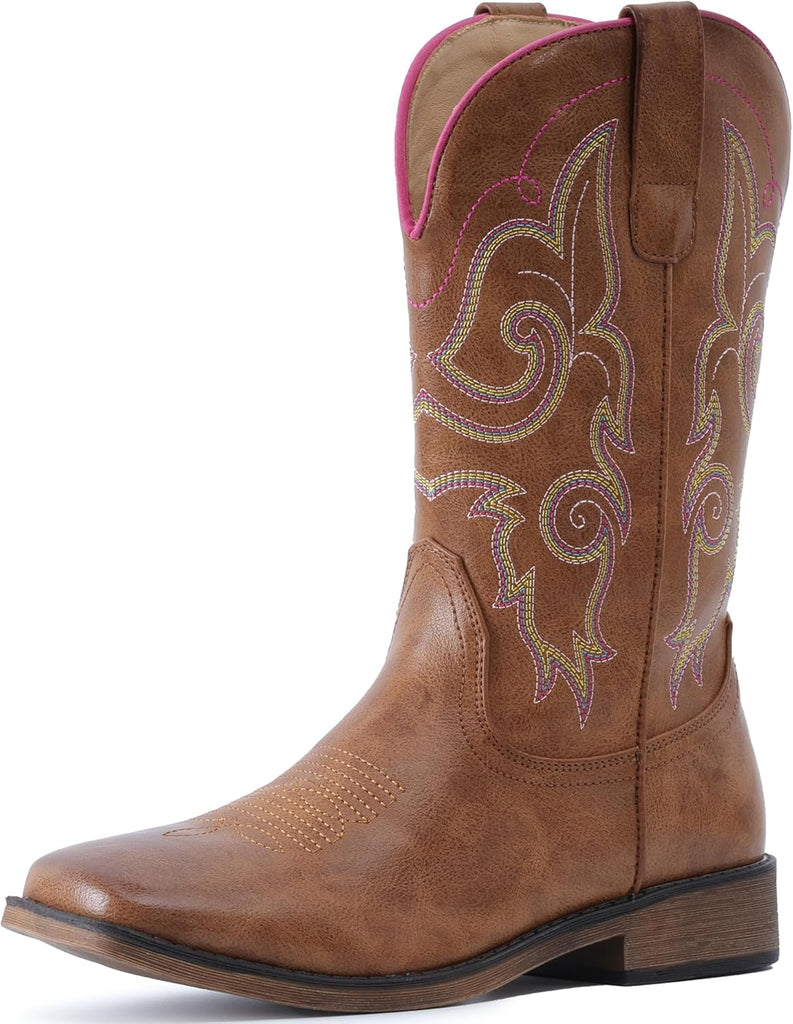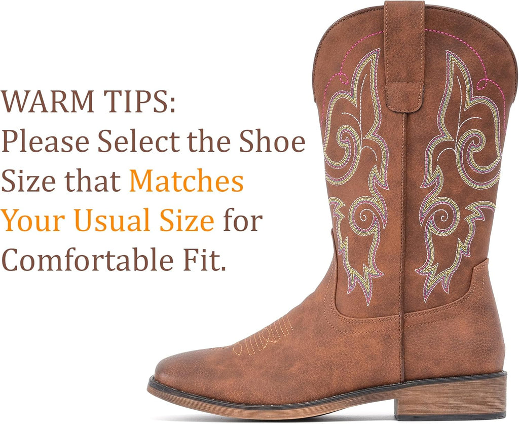 VUN Cowboy Boots For Women Square Toe Western Boots Mid Calf Cowgirl Boots Pull On Fashion Embroidered Cowboy Boots