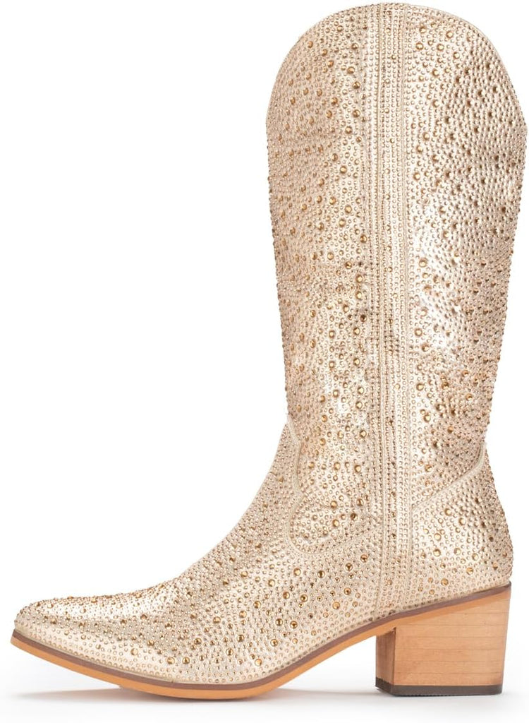 - Fashionable - VUN glitter cowgirl boots are hit full inlayed with sparkling rhinestones, and owns a very classic cowboy boots shape. Whether it's at parties or in daily wear, keeping eye-catching among the crowd and occupying the mainstream of fashion.