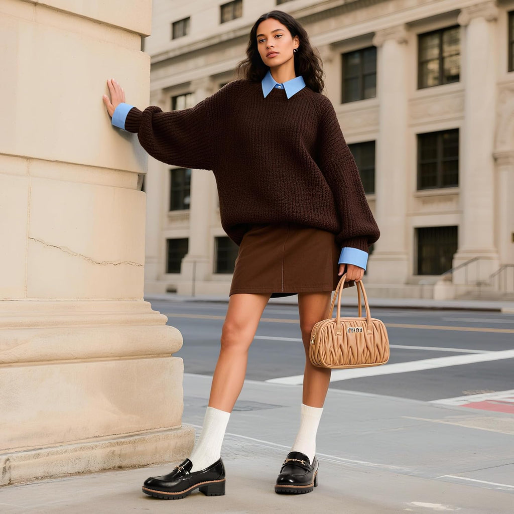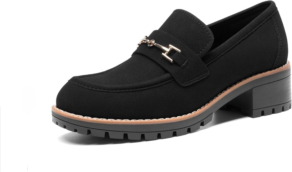 VUN Women's Chunky Loafers, Platform Comfortable Slip-On Dressy Business Casual Shoes