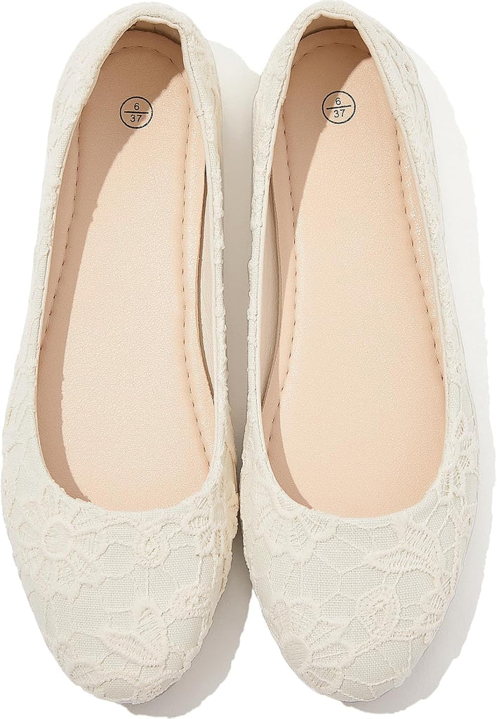 VUN Dress Shoes for Women Round Toe Flats Shoes Lace Ballet Flats