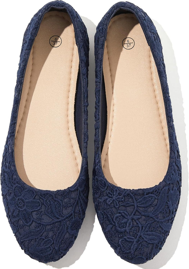 • Beautiful Lace Mesh Upper: The upper of flats shoes women is made of lace mesh fabric which looks pretty and fashionable. The pattern of women's flats is flower which can be bridal flats for wedding.