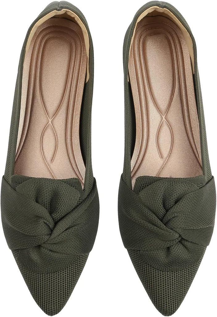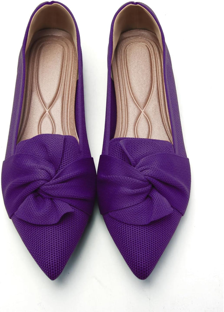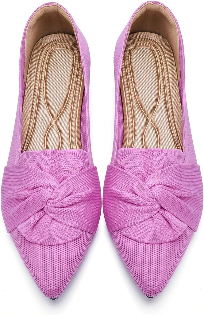 VUN Flats for Womens Pointed Toe Ballet Flats with Bow Comfortable Knit Dressy Flats