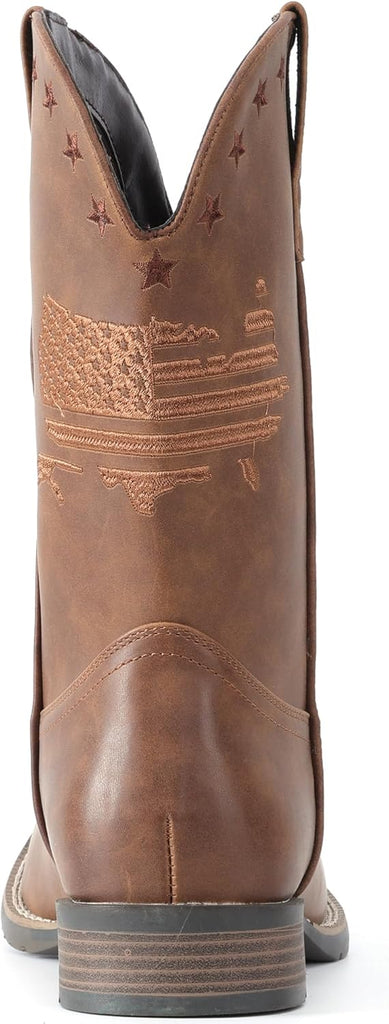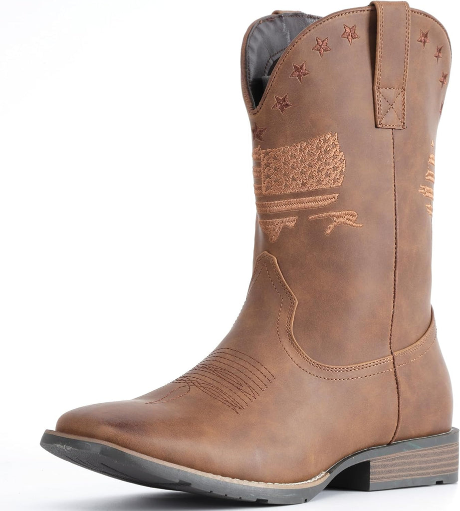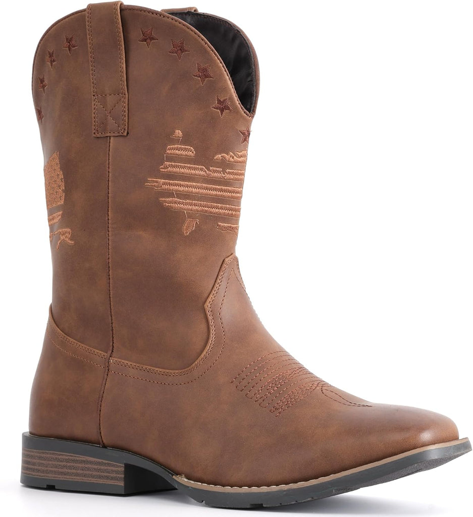 VUN Cowboy Boots For Men Square Toe Western Retro Boot Durable Classic