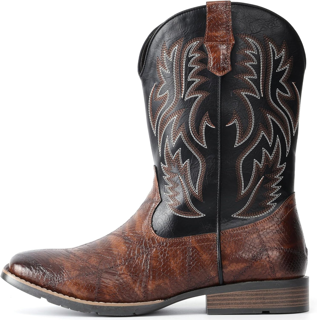 VUN Cowboy Boots For Men Square Toe Western Retro Boot