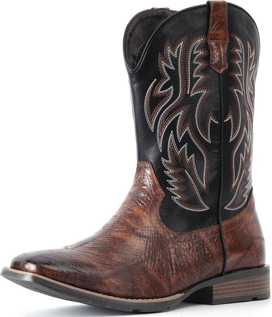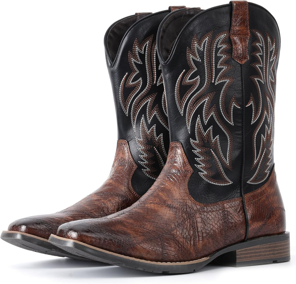 VUN Cowboy Boots For Men Square Toe Western Retro Boot