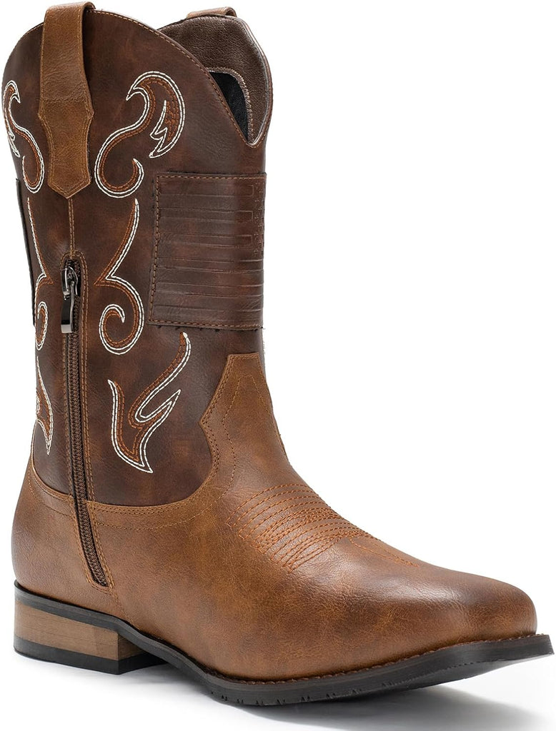 VUN Cowboy Boots For Men Western Boot Classic American Flag Embroidered