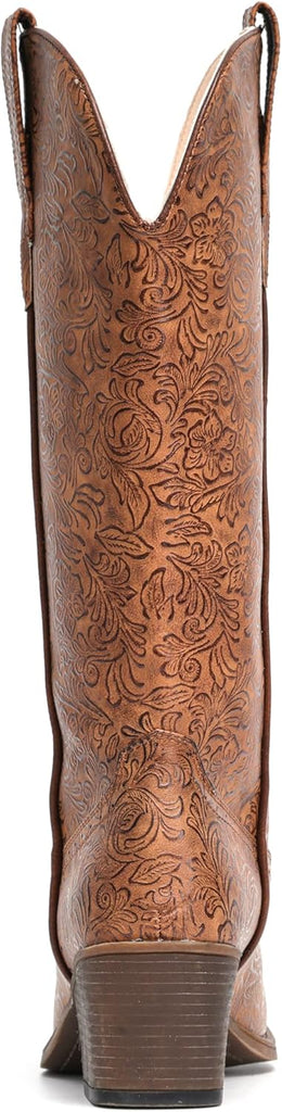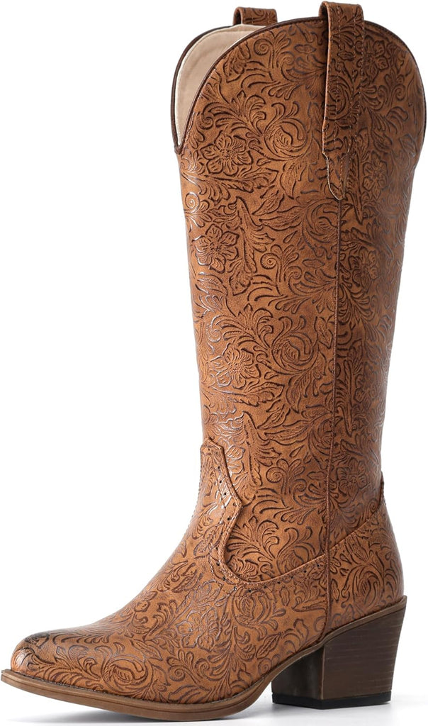 VUN Cowboy Boots For Women Mid Calf Western Cowgirl Boots with Chunky Heel