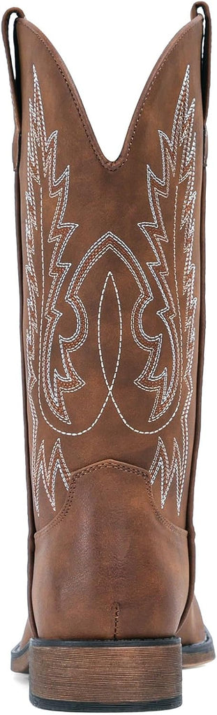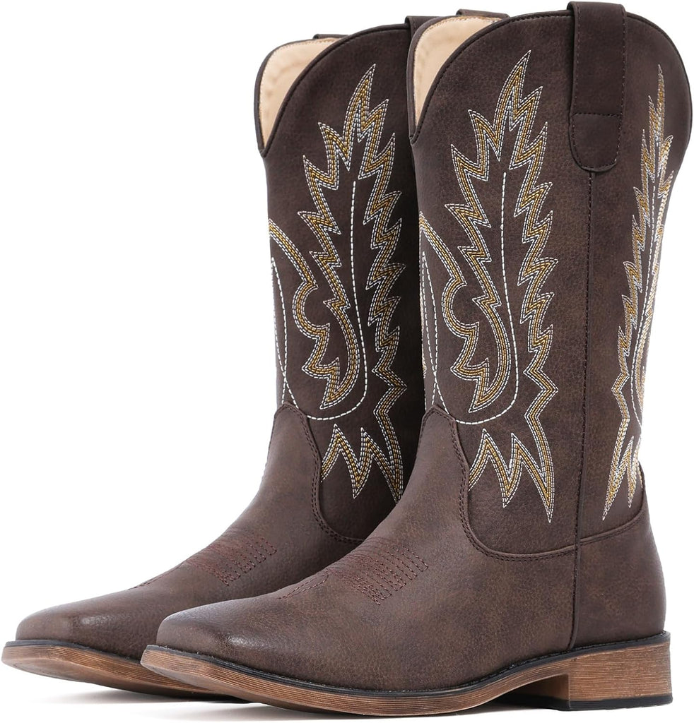 VUN Cowboy Boots For Women Square Toe Western Boots Mid Calf Cowgirl Boots Pull On Embroidered Brown Cowboy Boots