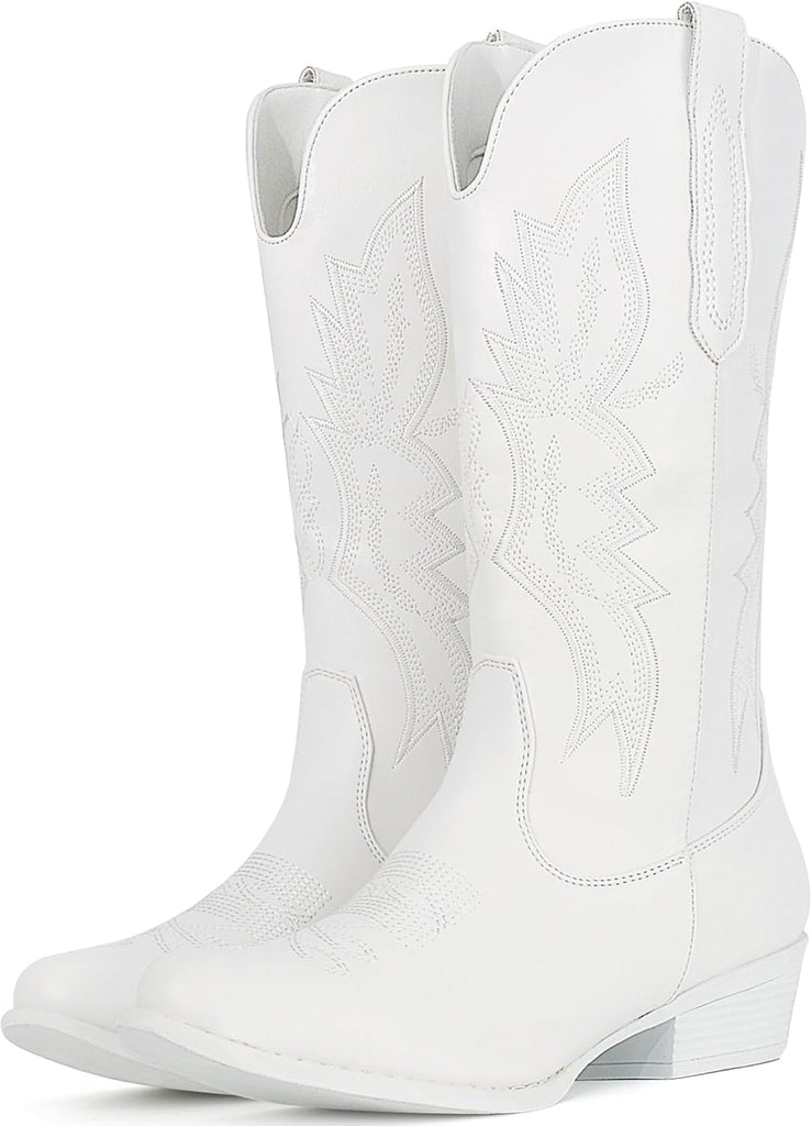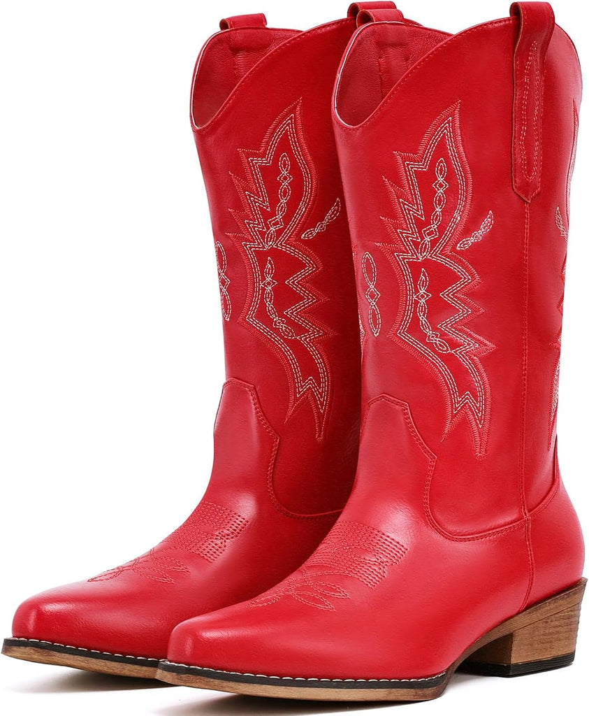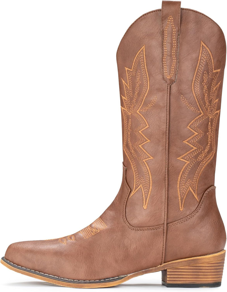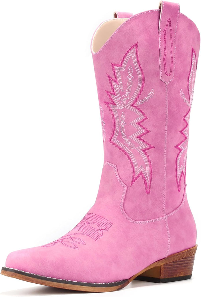 VUN Cowboy Boots For Women Western Boots Cowgirl Boots Pull On Pointy Toe Mid Calf Boots