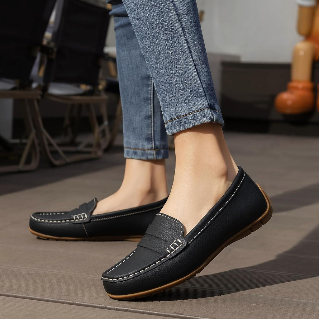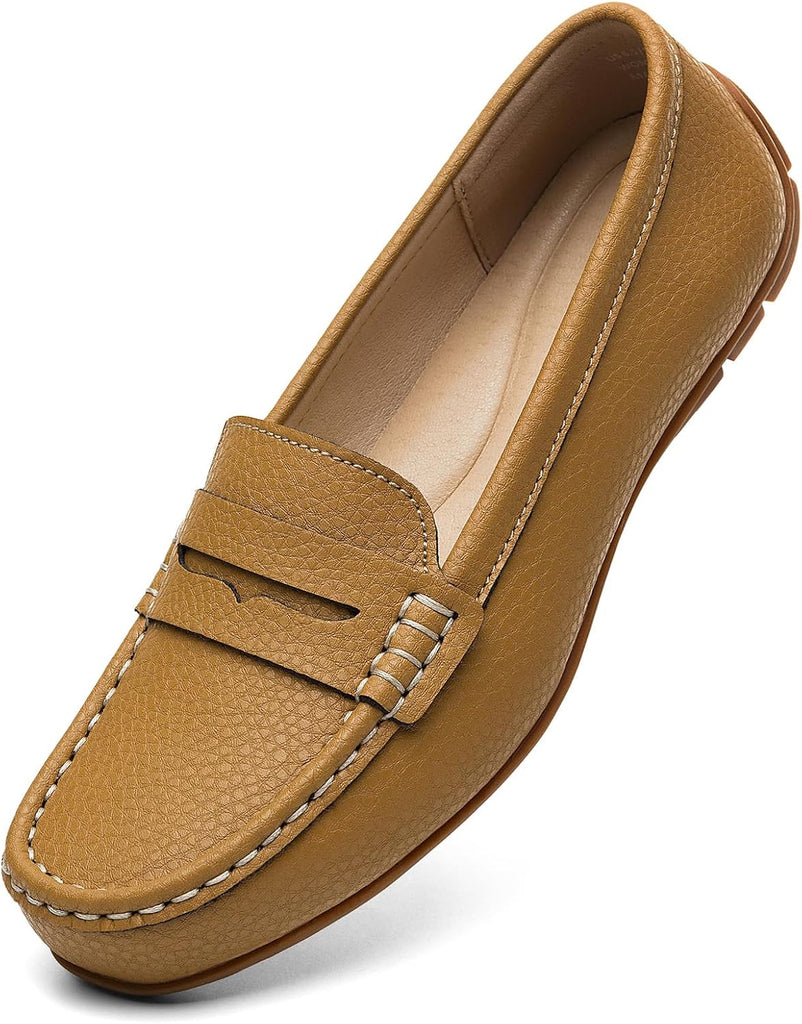VUN Women's Comfortable & Lightweight Leather Penny Loafers Slip-Ons Cute Business Casual Dress Shoes Work Office Flats