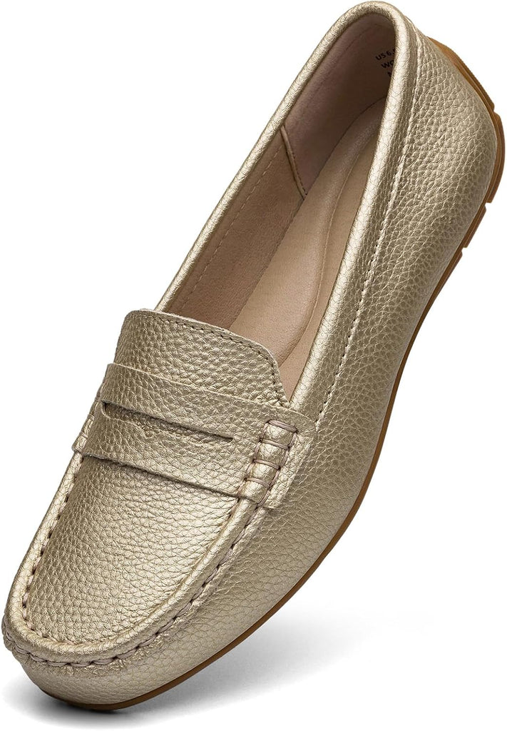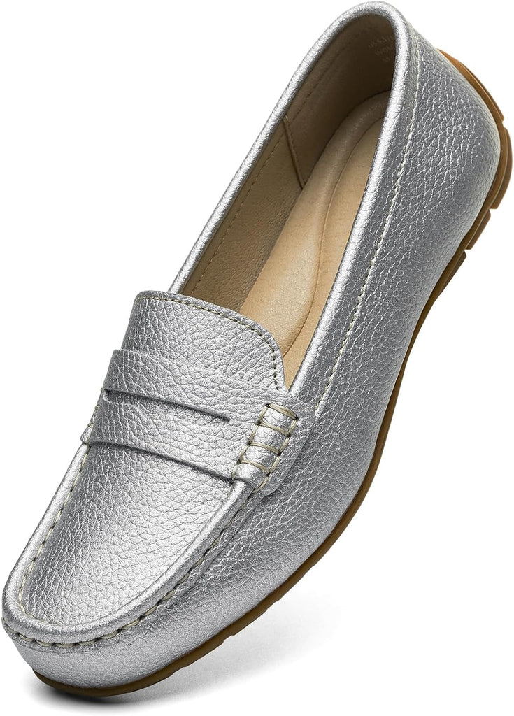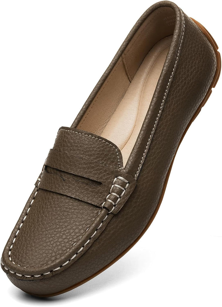 - Little pillows for your feet: Soft & supple pebbled leather will stretch to fit your feet like a glove so quickly, comfortable to wear and break in. The bottom non slip rubber soles make them durable and provide good traction grooves that will keep from slipping, which makes you feel safe and secure with every step. The removable memory foam insoles have gentle arch support and are lightly cushioned with extra padding under the heel.