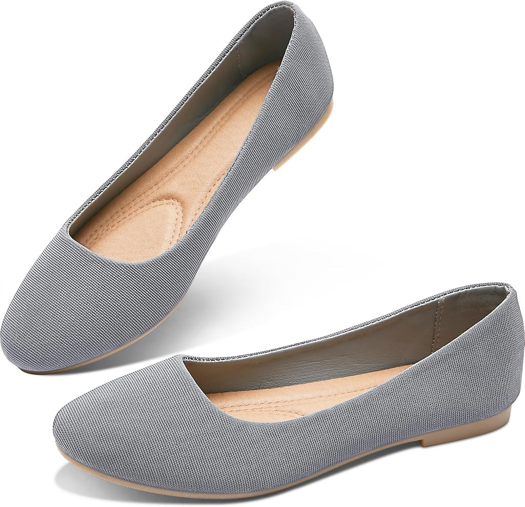 VUN Round Toe Women Flat Shoes Slip on Girls Dress Black Ballet Flats