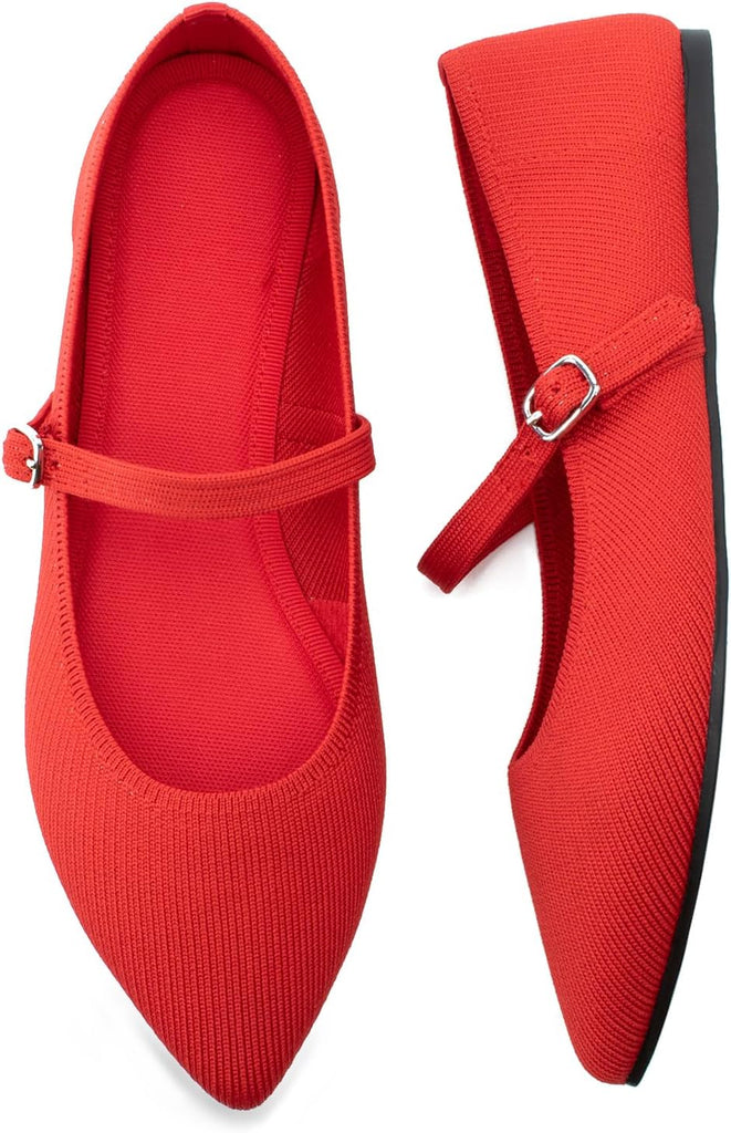 VUN Pointed Toe Flats Knit Ballet Flat Shoes for Women Comfortable with Adjustable Strap,Washable Dressy Casual Flats for Work Office