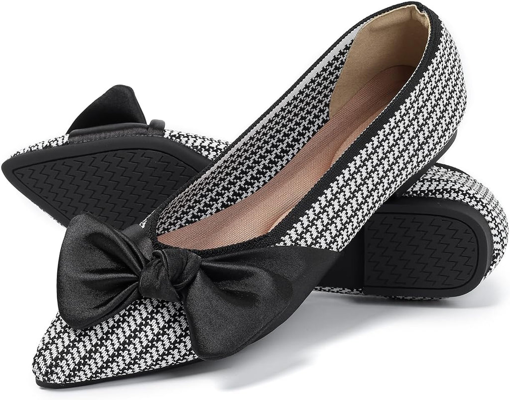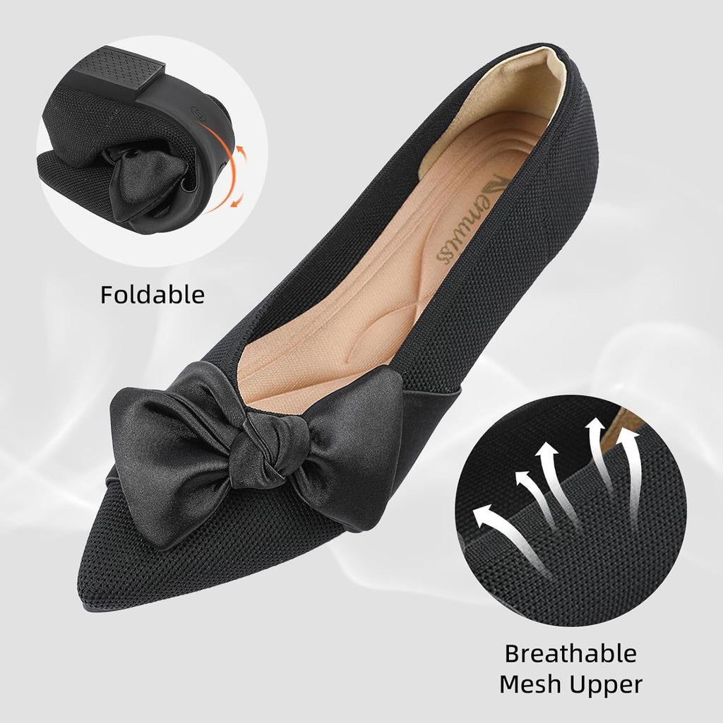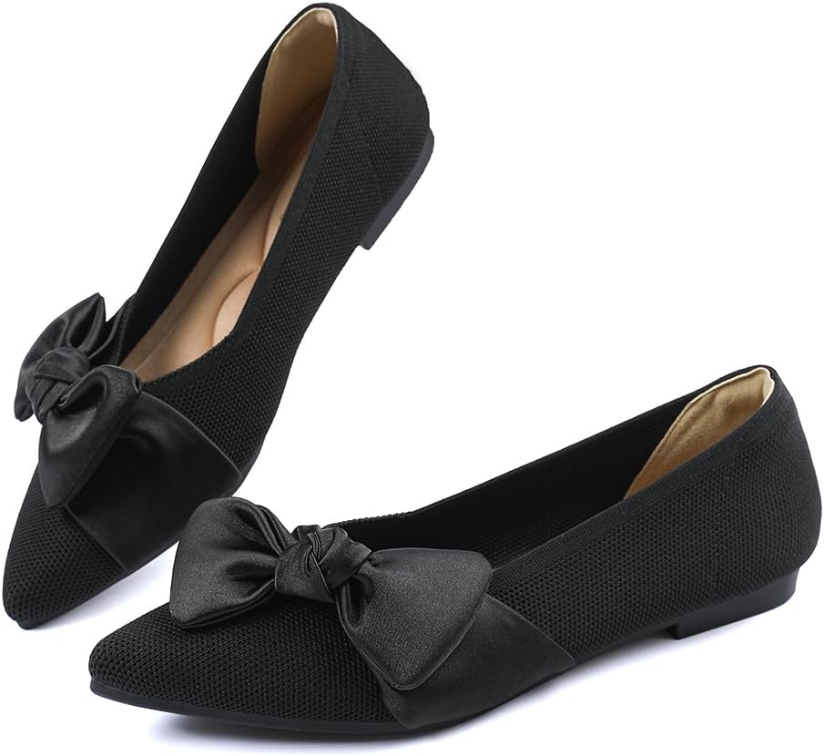 Elegant Bow Design: These pointed toe flats for women elevate everyday style with their cute bow detail, anchored by a classic black option complemented by versatile color variations...